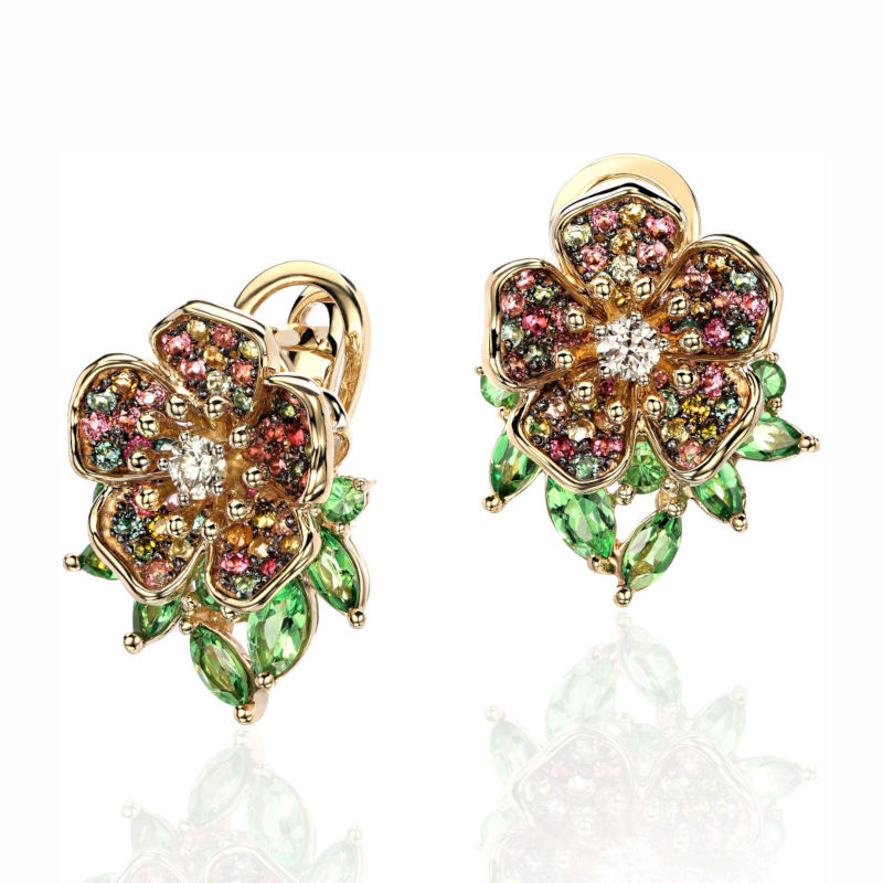 Серьги из желтого золота 585 пробы с тсаворитами, турмалинами и бриллиантами 01С6314574-4