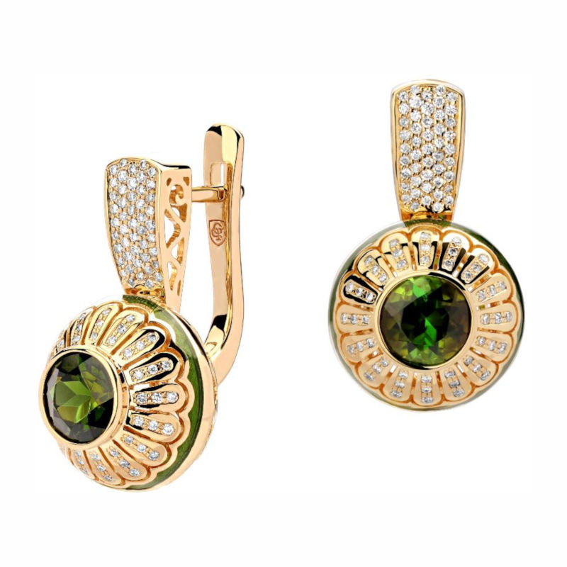 Серьги из желтого золота 585 пробы с турмалинами и бриллиантами 01С636673Э-5