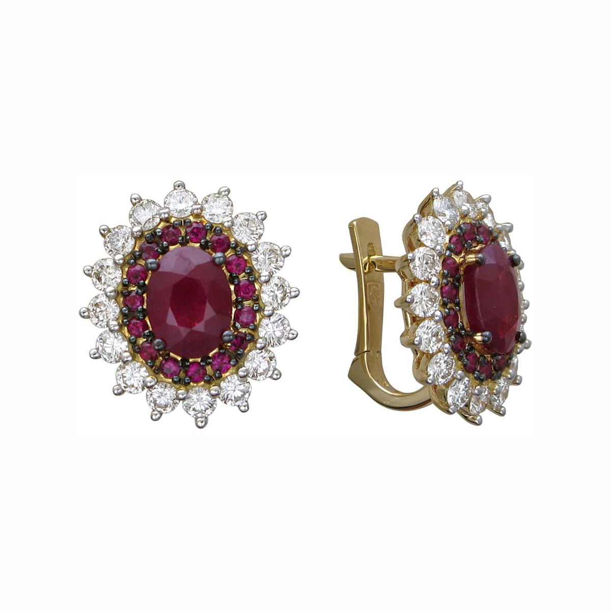 Серьги из желтого золота 750 пробы с рубинами и бриллиантами 01С6412075-3