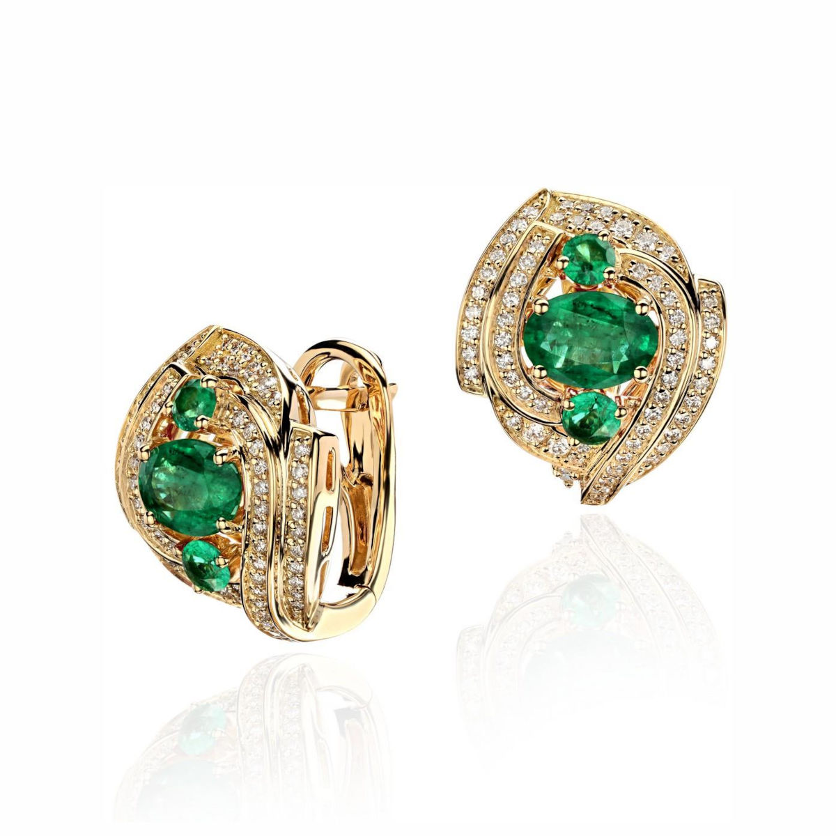 Серьги из желтого золота 750 пробы с изумрудами и бриллиантами 01С6413994-2