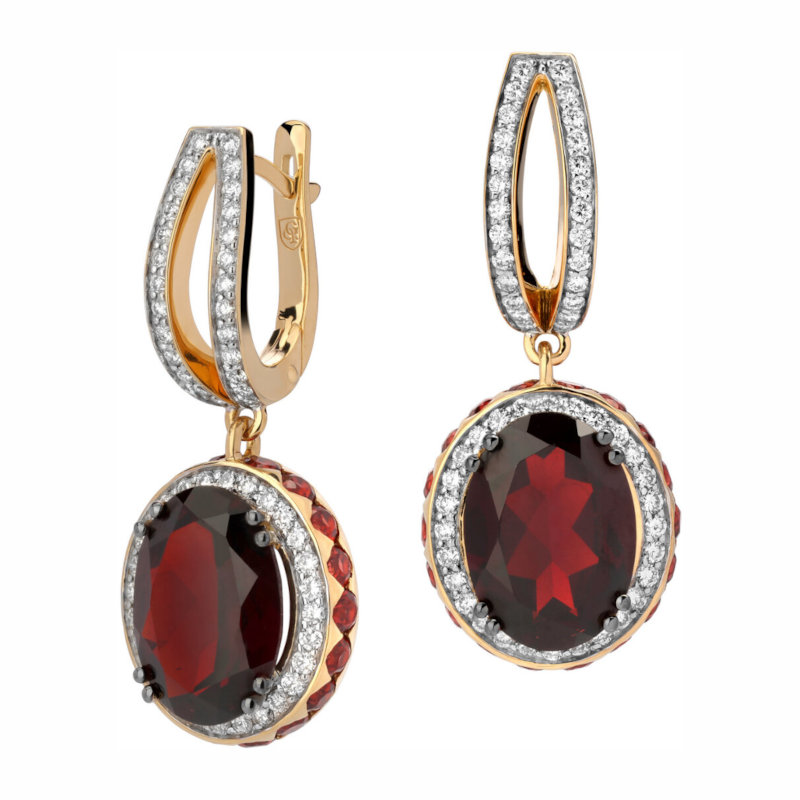 Серьги из желтого золота 750 пробы с гранатами и бриллиантами 01С647517-2