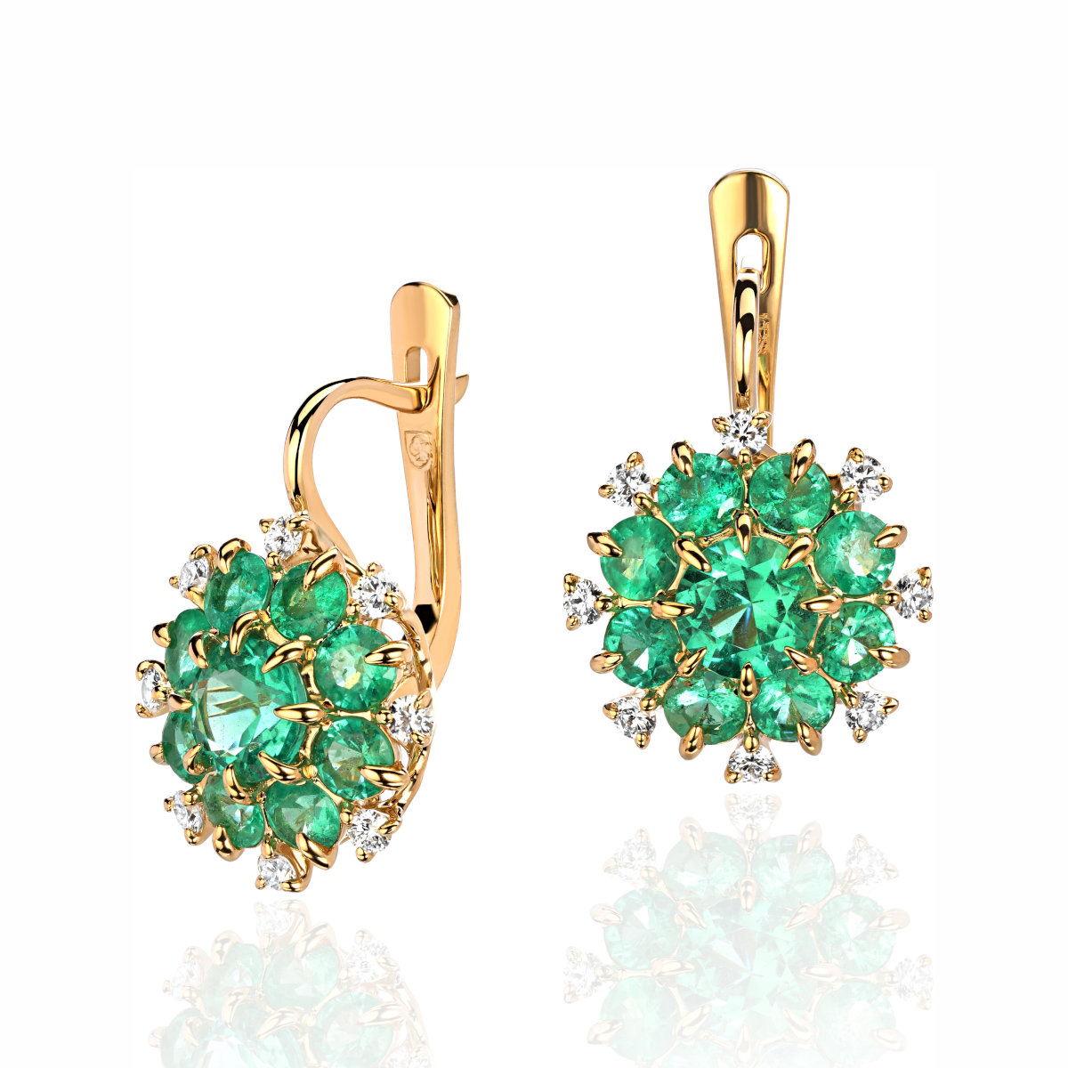 Серьги из желтого золота 750 пробы с изумрудами и бриллиантами 01С647693-4
