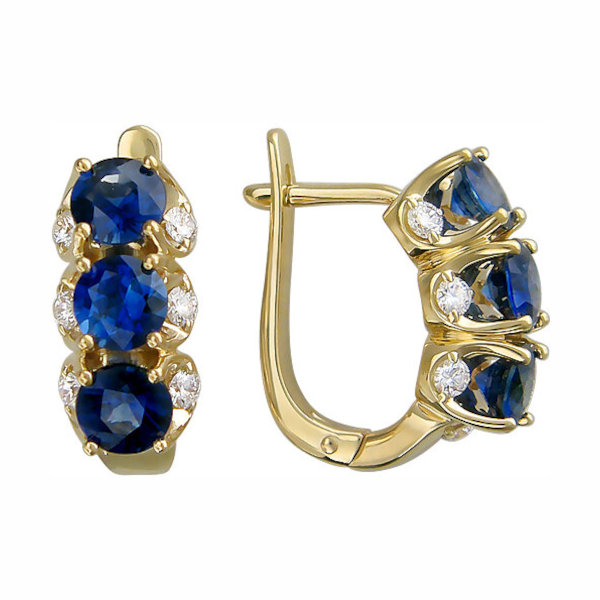Серьги из желтого золота 750 пробы с сапфирами и бриллиантами 01С647995-3
