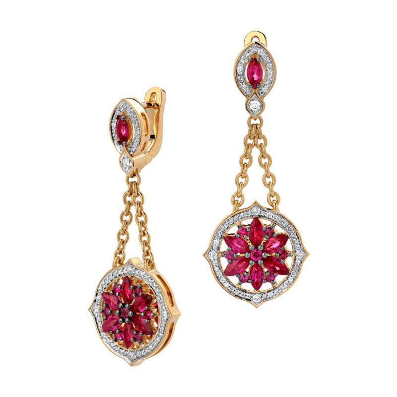 Серьги из желтого золота 750 пробы с рубинами и бриллиантами 01С649959-2