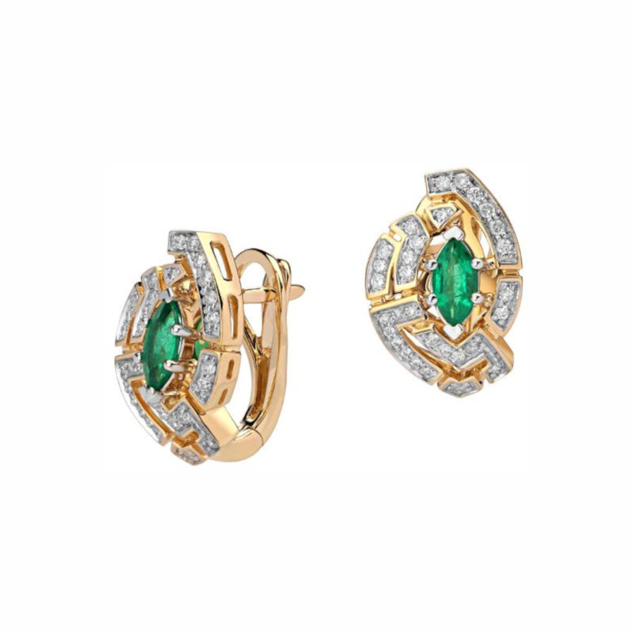 Серьги из комбинированного золота 585 пробы с изумрудами и бриллиантами 01С6614237ЖY-1