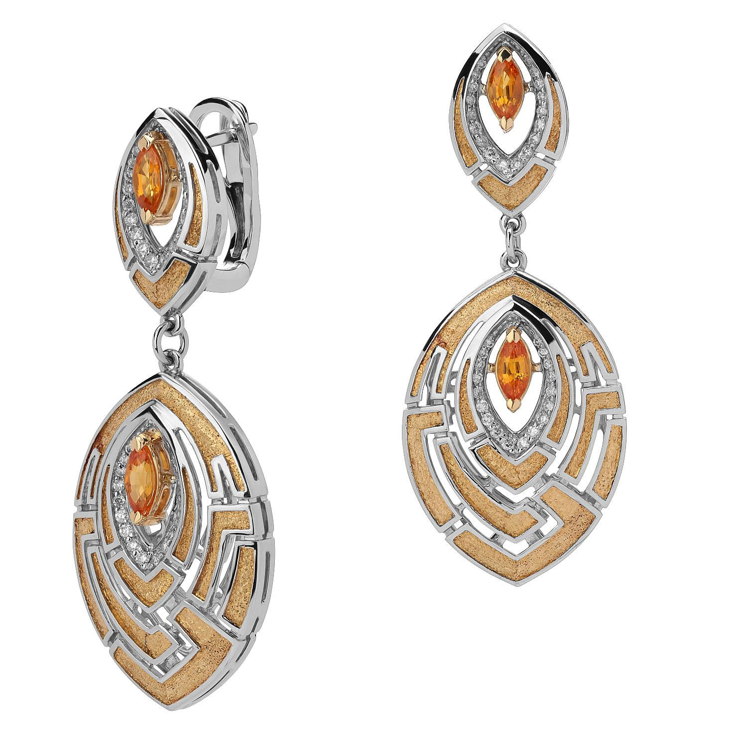 Серьги из комбинированного золота 585 пробы с сапфирами и бриллиантами 01С6613141Ж-1