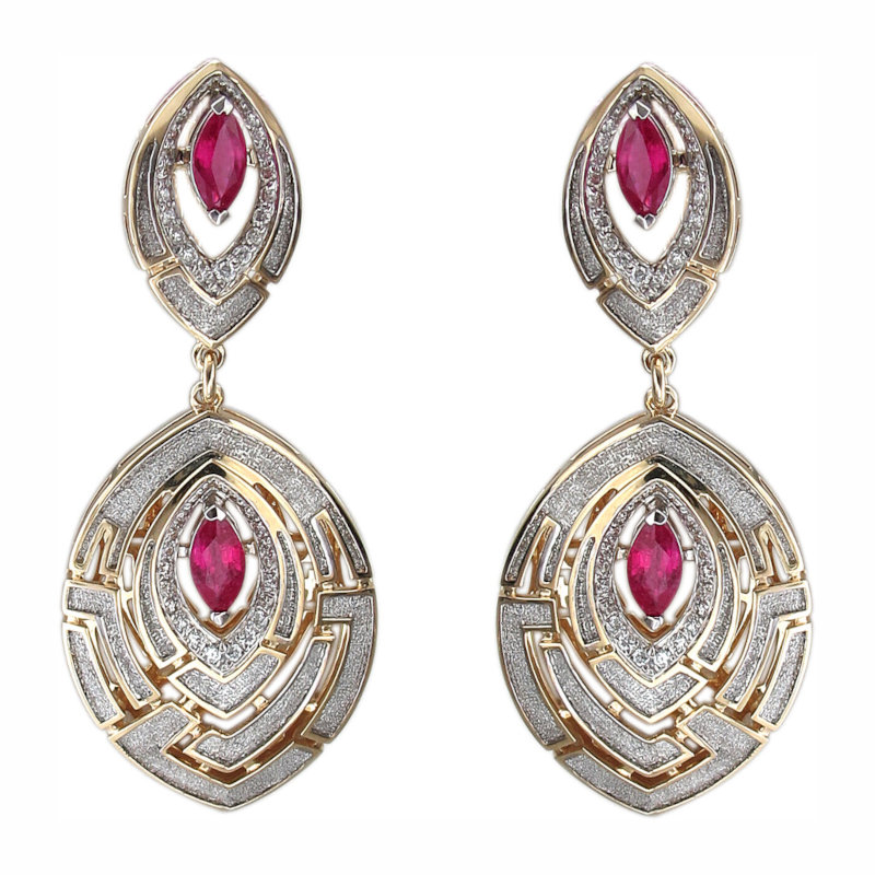 Серьги из комбинированного золота 585 пробы с рубинами, платиной и бриллиантами 01С6613141Ж-2