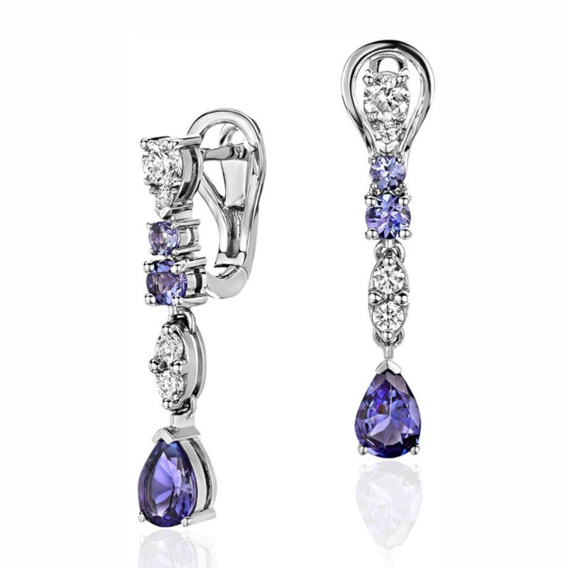 Серьги из белого золота 750 пробы с танзанитами и бриллиантами 01С6715080-1