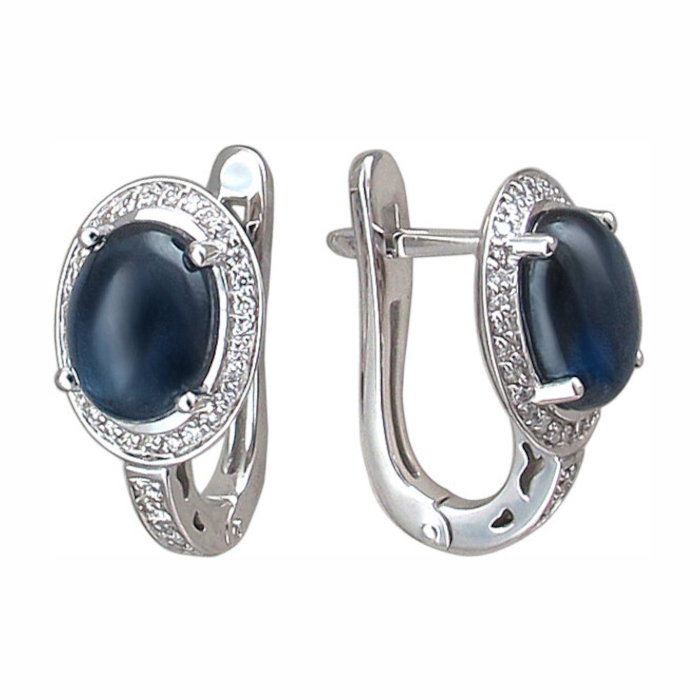 Серьги из белого золота 750 пробы с сапфирами и бриллиантами 01С673487-2
