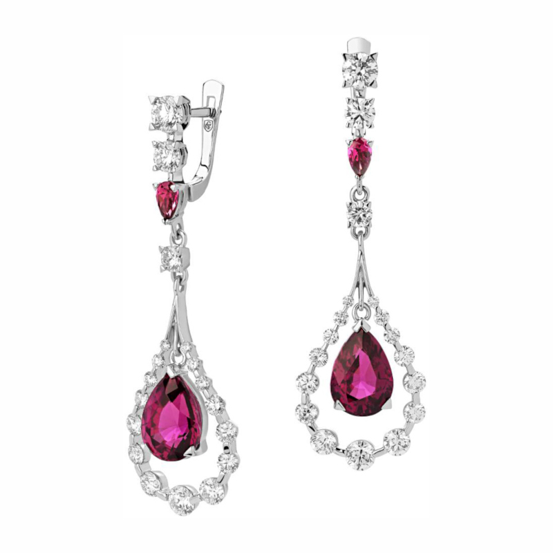 Серьги из белого золота 750 пробы с родолитами и бриллиантами 01С673598-3