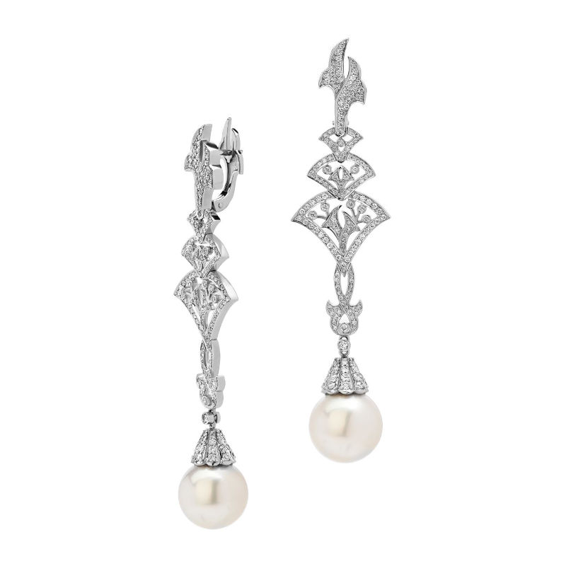 Серьги из белого золота 750 пробы с жемчугом и бриллиантами 01С6731045-1