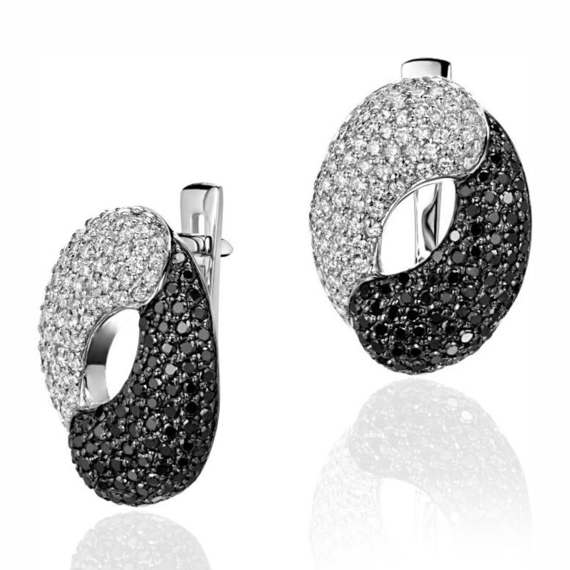 Серьги из белого золота 750 пробы с сапфирами и бриллиантами 01С674257-1