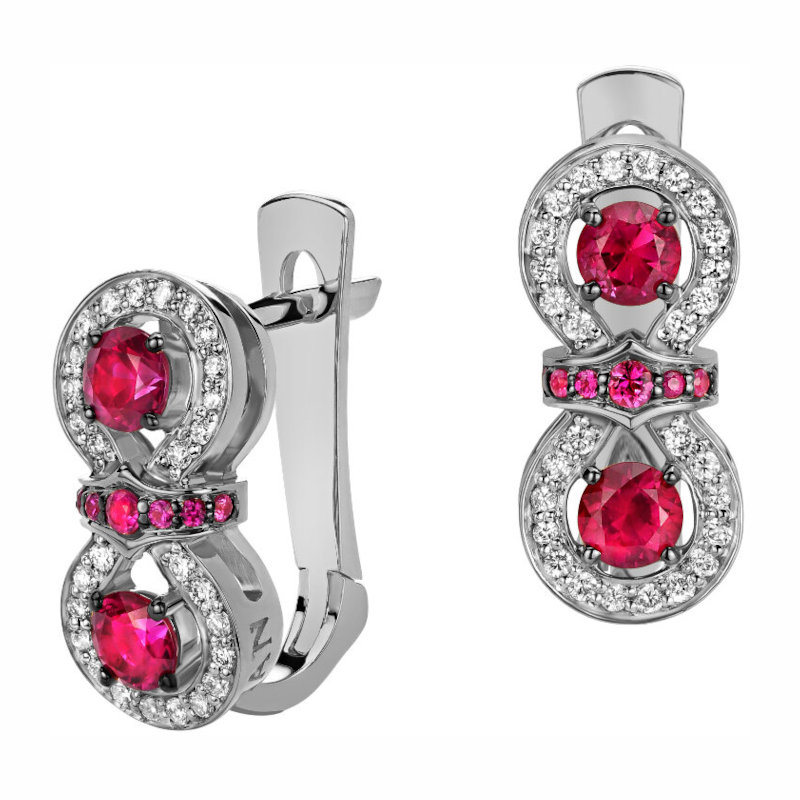 Серьги из белого золота 585 пробы с бриллиантами и рубинами 01С677818-3