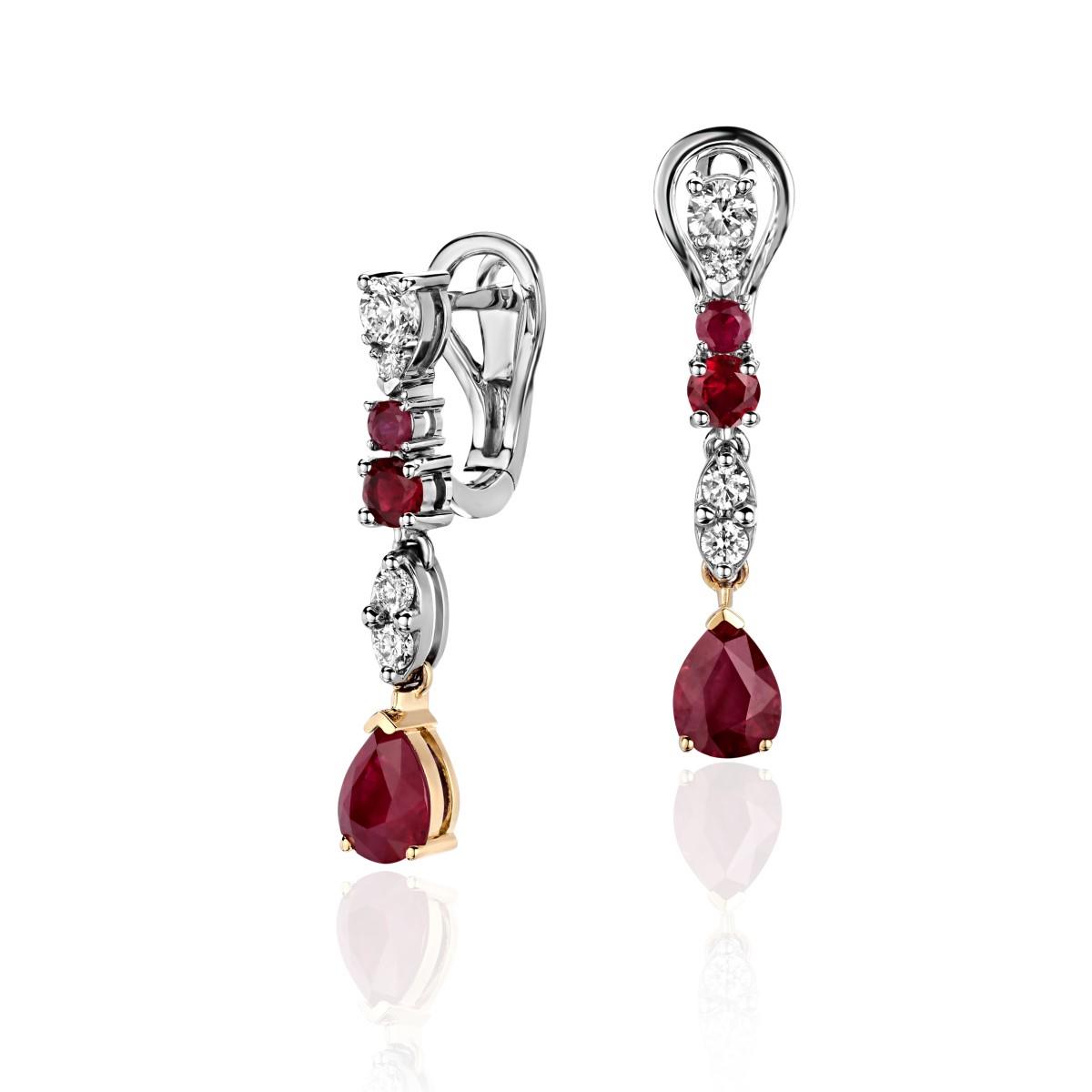 Серьги из комбинированного золота 750 пробы с рубинами и бриллиантами 01С6815080-2