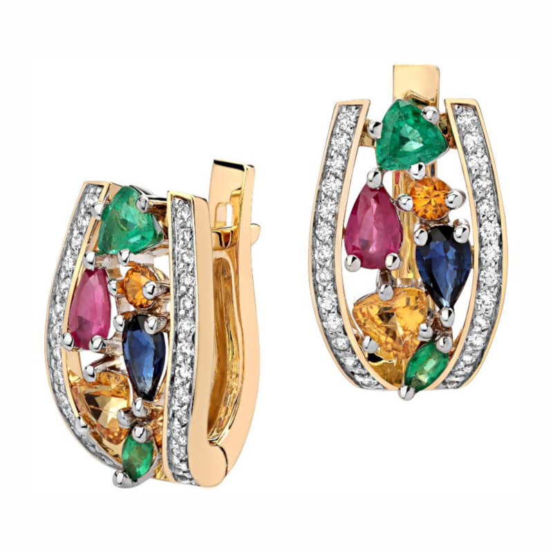 Серьги из комбинированного золота 750 пробы с сапфирами, изумрудами, рубинами и бриллиантами 01С682902-3