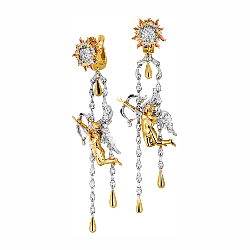 Серьги из комбинированного золота 750 пробы с бриллиантами и эмалью 01С684781ЭL