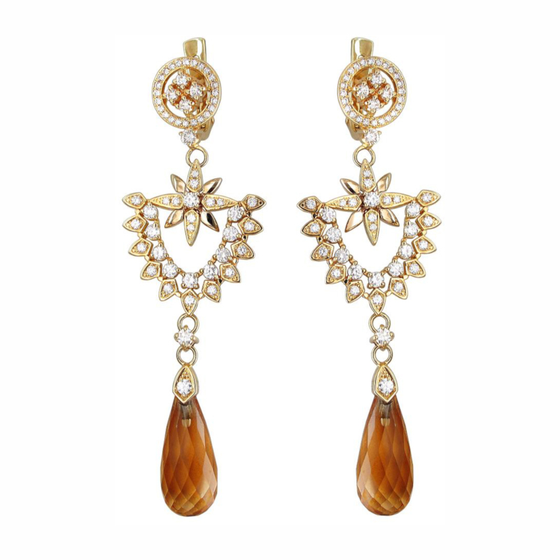 Серьги из комбинированного золота 750 пробы с цитринами и бриллиантами 01С685103-1