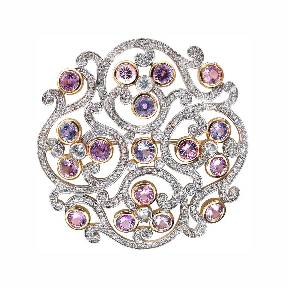 Брошь из желтого золота 750 пробы с сапфирами 01Ш540119-1