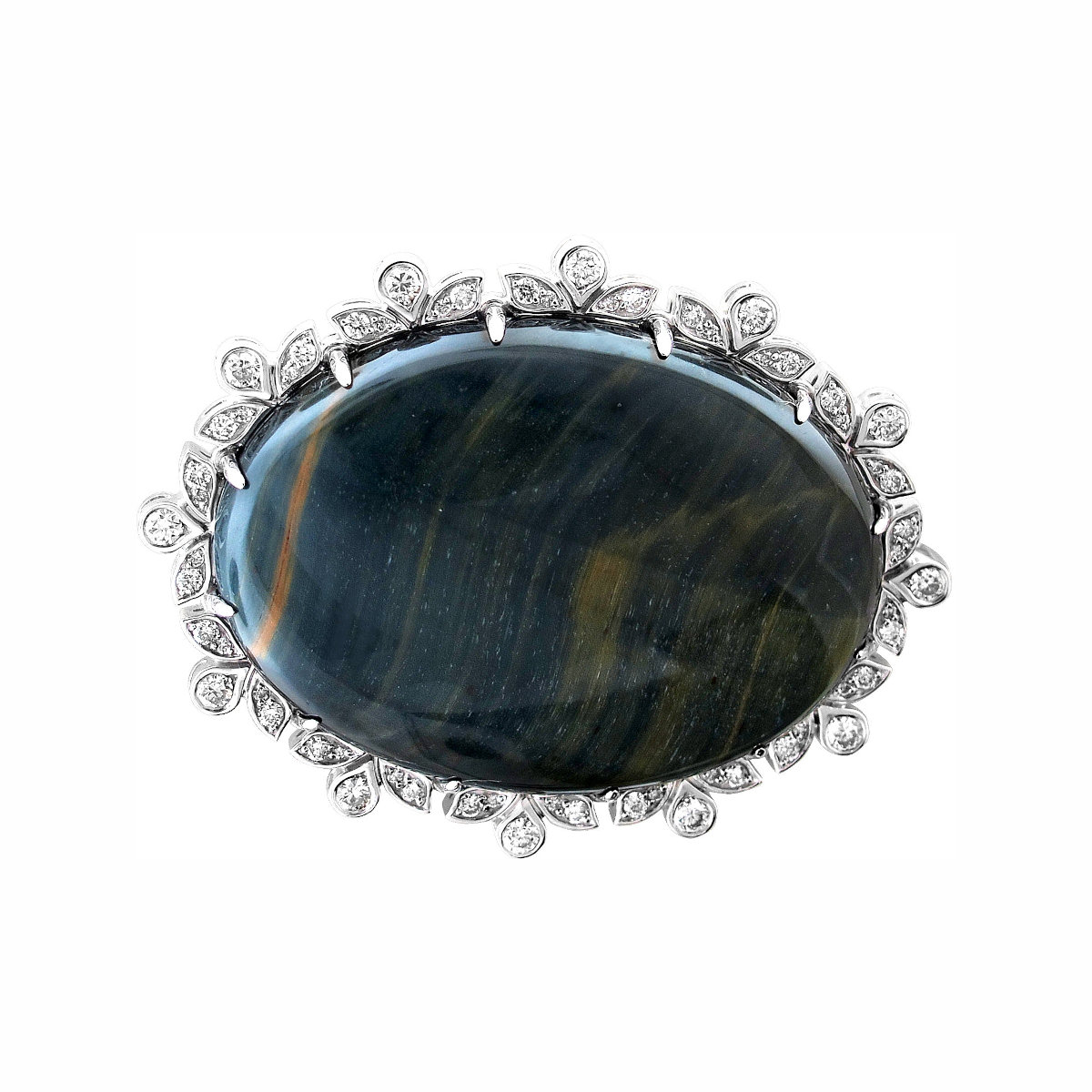 Брошь из белого золота 585 пробы с ониксом и бриллиантами 01Ш620270-1