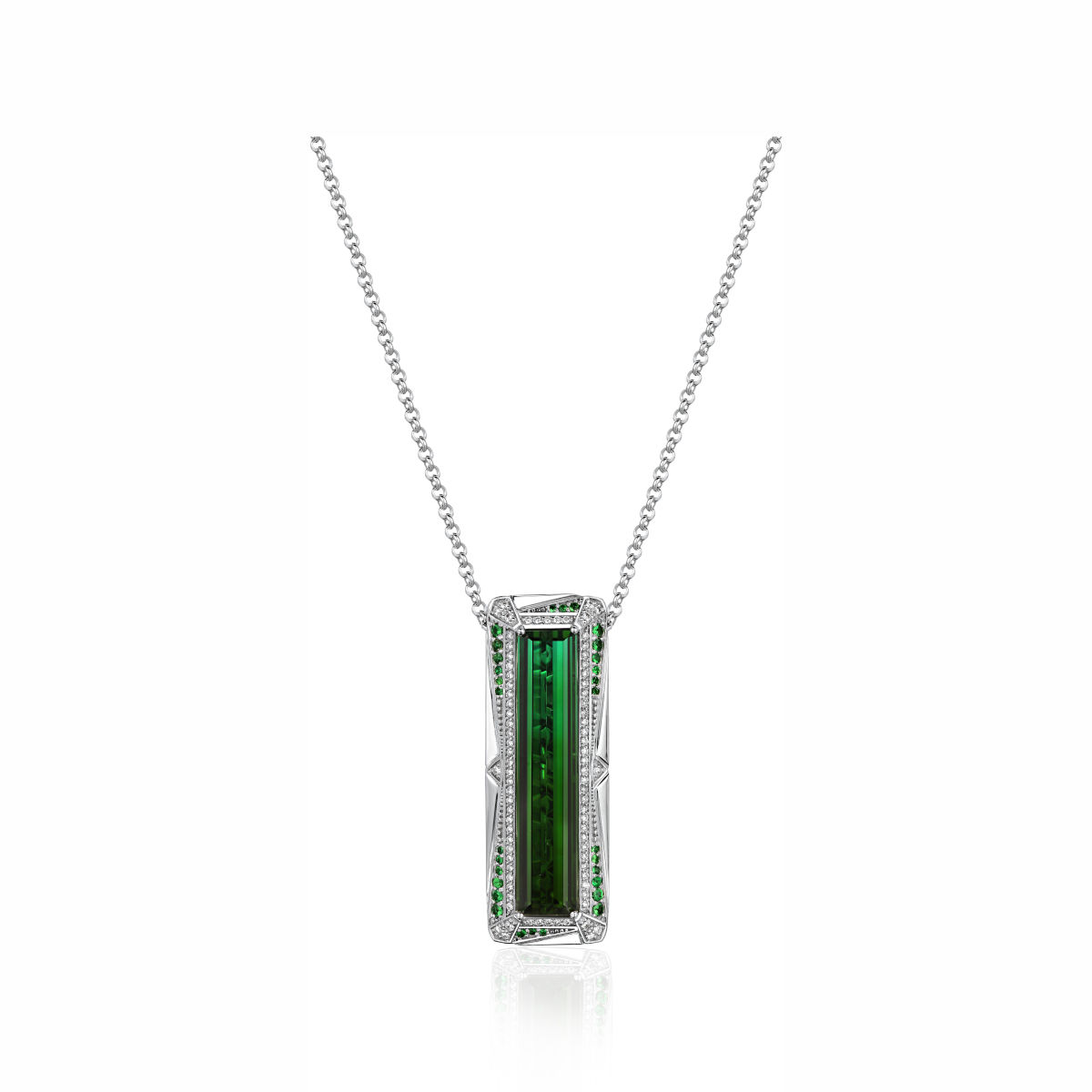 Колье из белого золота 585 пробы с турмалином, тсаворитами и бриллиантами 01Л622279-1