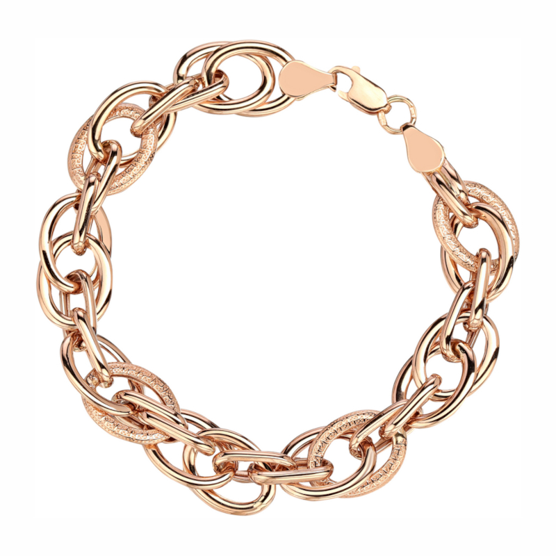 Браслет женский из красного золота 585 пробы без вставок — это великолепный пример современного ювелирного искусства, который мы представляем в рамках нашей коллекции Fashion. Ювелирный дом Эстет, один из лидеров ювелирного рынка с 1991 года, гордится тем, что предлагает более 15 тысяч ювелирных изделий, включая этот изысканный золотой браслет 585.