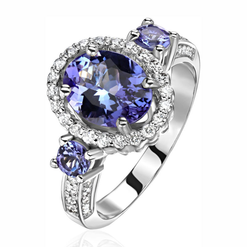 Кольцо из белого золота 585 пробы с танзанитами и бриллиантами 01К6215088-4