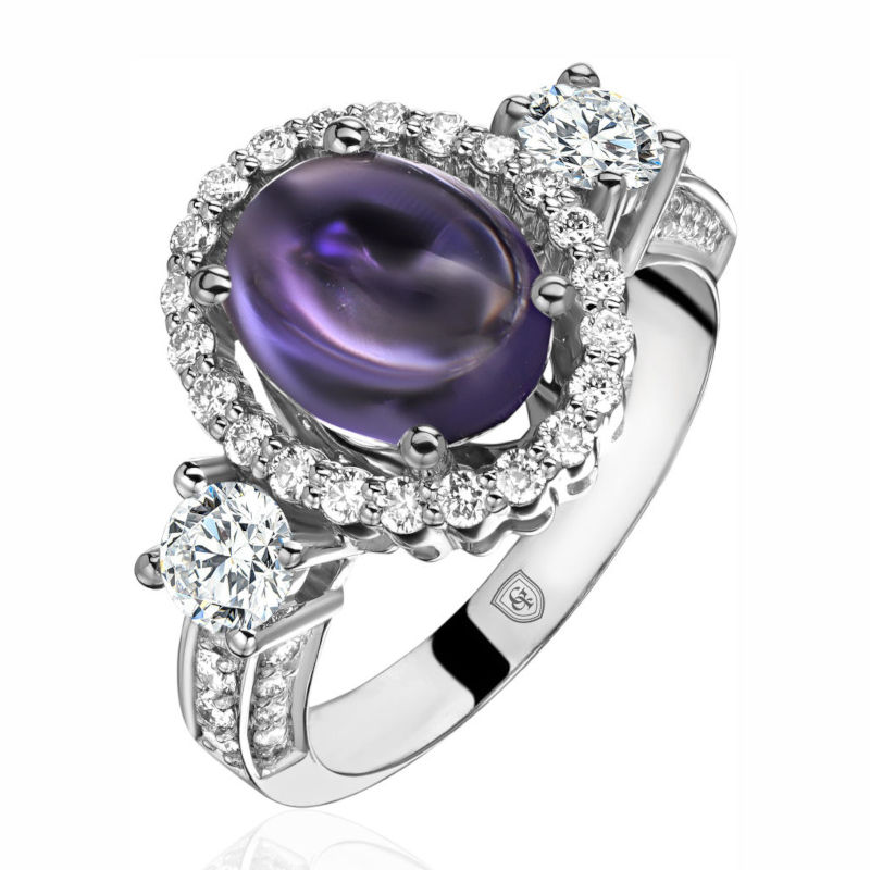Кольцо из белого золота 585 пробы с иолитом, сапфирами и бриллиантами 01К6213988-5