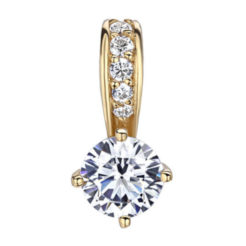 Декоративная подвеска из желтого золота 585 пробы с фианитами - идеальный подарок для любой женщины. Ее легко сочетать с самыми разными нарядами и другими украшениями. Сегодня сочетание золота и фианита уже считается классикой. Роскошный блеск фианита привлекает взгляды, а оригинальный дизайн вносит в образ нотку элегантности. Самые смелые решения дизайнеров воплощаются в современных украшениях.