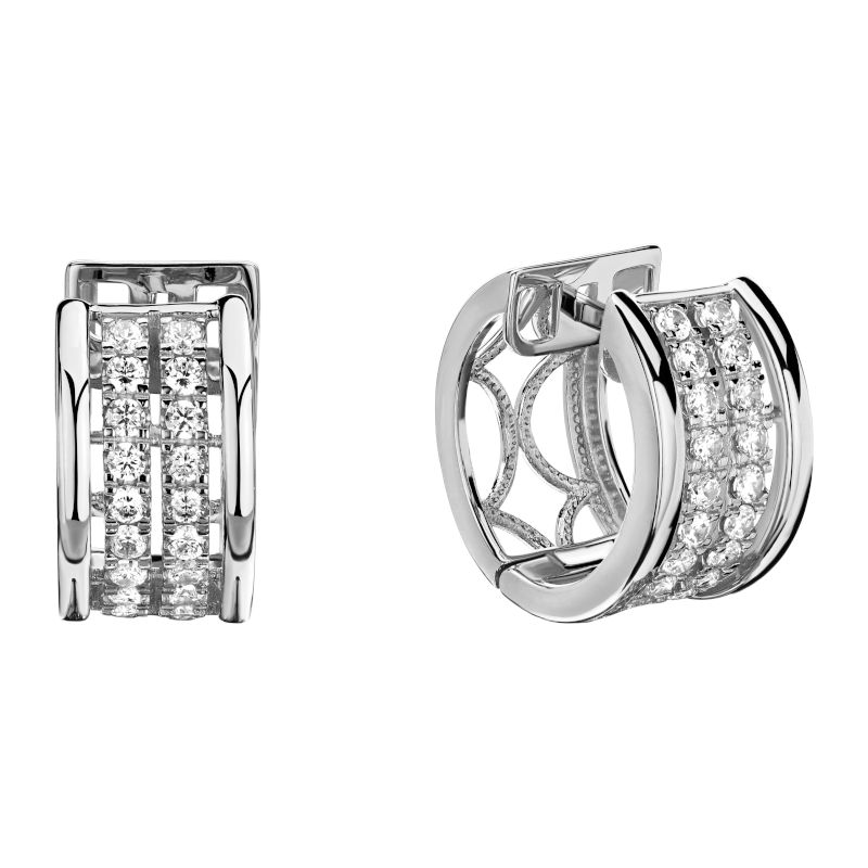 Серьги конго из белого золота 585 пробы с фианитами из коллекции "Стиль города". Дизайнеры вдохновились городскими дорогами, развязками, ночными фонарями, мостами и строительными конструкциями. Поэтому в коллекции много линий, полос, камней. Городской стиль casual одинаково нравится людям разного возраста и достатка. Он позволяет сформировать полноценный образ людям с любой фигурой и ростом. Особенностью городского стиля в украшениях будет то, что их можно носить каждый день, независимо от дресс-кода или планируемого мероприятия. В меру сдержанный и расслабленный стиль мегаполиса, который объединяет в себе комфорт и элегантность.