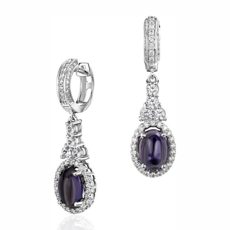 Серьги из белого золота 585 пробы с бриллиантами, иолитами и сапфирами 01С6213988-5