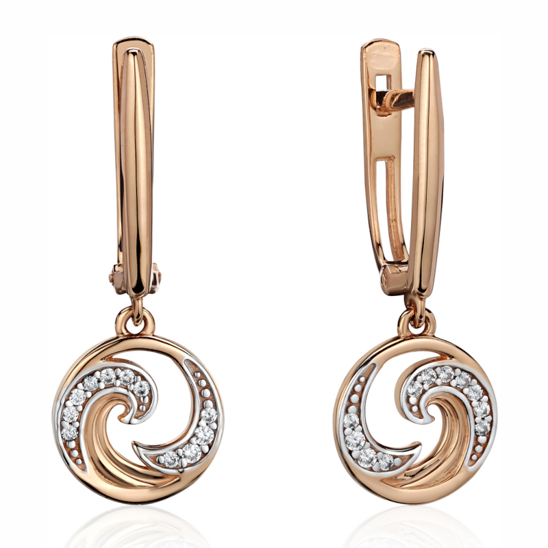 Серьги из красного золота 585 пробы с фианитами 01С1114737Р