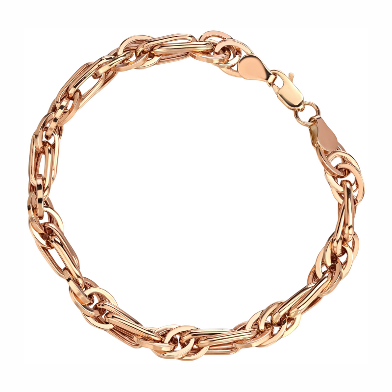 Браслет женский из КРАСНОГО золота 585 пробы без вставок — это великолепный пример современного ювелирного искусства, который мы представляем в рамках нашей коллекции Fashion. Ювелирный дом Эстет, один из лидеров ювелирного рынка с 1991 года, гордится тем, что предлагает более 15 тысяч ювелирных изделий, включая этот изысканный золотой браслет 585.