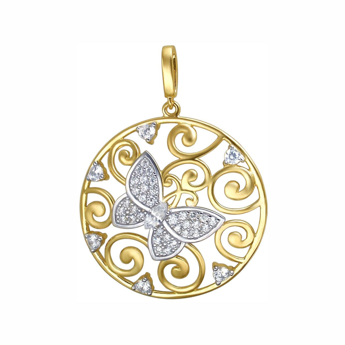 Подвеска "Бабочка" из желтого золота 585 пробы с фианитами 01П133244