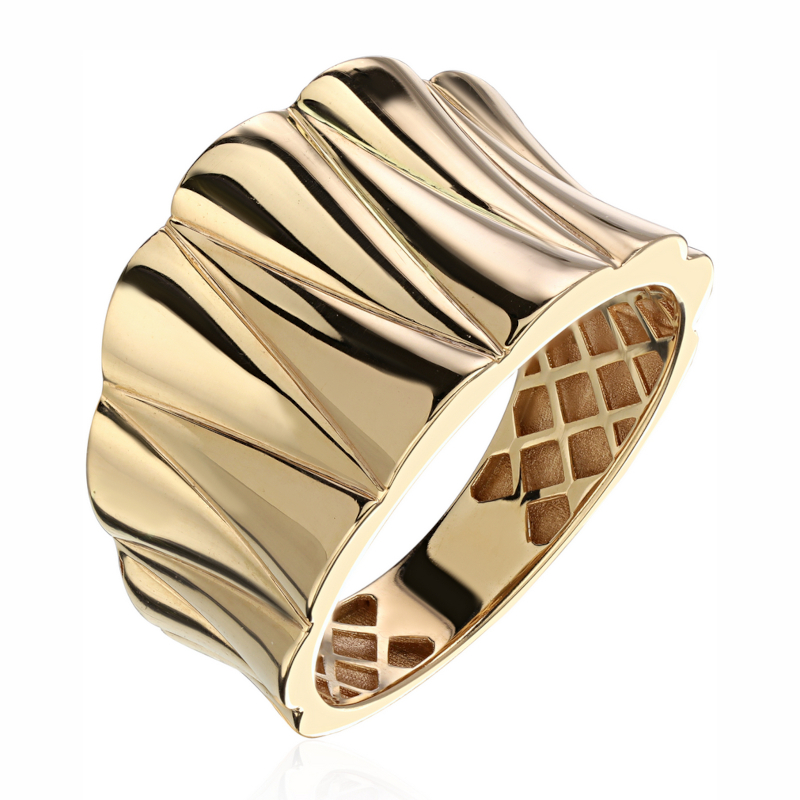 Безе - коллекция объемных и стильных ювелирных украшений и новейшая технология ювелирного дома Estet, которая позволила добиться крупных форм и абсолютно воздушных весов. Крупные и объемные на первый взгляд формы колец и ажурная биза - отсылают нас к итальянской ювелирной эстетике - детальная проработка ювелирного изделия, даже внутри кольца легко разглядеть искусное сетчатое орнаментальное наполнение. Яркие заметные крупные кольца - новый ювелирный тренд и не просто так - ведь объемные украшения отлично подходят всем девушкам и элегантно подчеркивают изящество движений и красоту движений своей хозяйки. В коллекции безе вы сможете найти как классические так и самые трендовые модели объемных колец, которые можно встретить в ювелирной индустрии. Представляем вам кольцо из золота без вставок для женщин из коллекции БЕЗЕ, созданное ювелирным домом Эстет. Это изделие воплощает в себе элегантность и простоту, что делает его идеальным выбором для повседневной носки и особых случаев. Каждое кольцо изготовлено с максимальной внимательностью к деталям, отражая безупречное качество нашего производства.