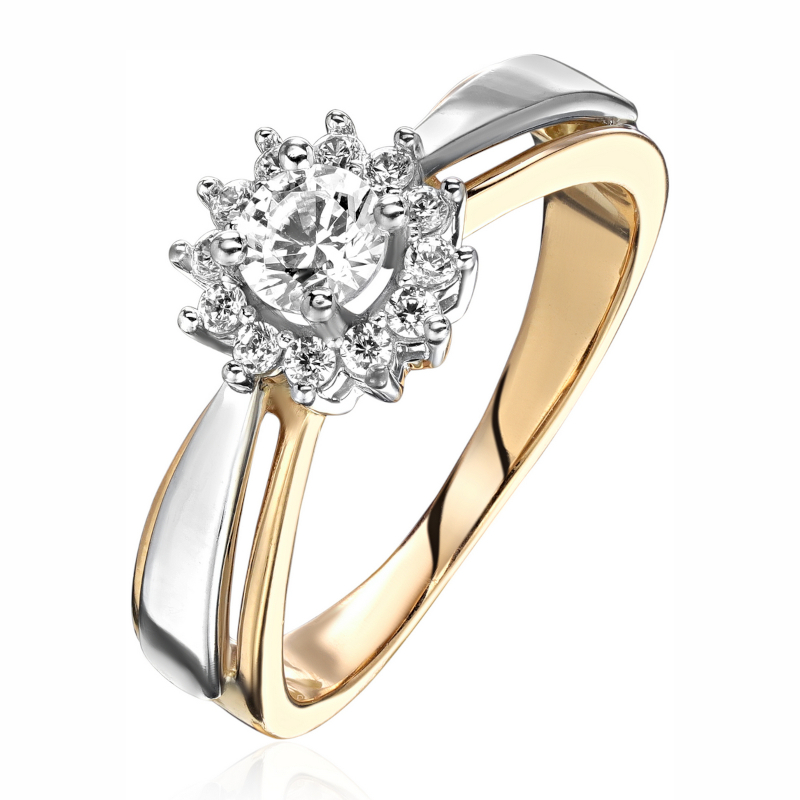 Кольцо из комбинированного золота 585 пробы с фианитами 01К1614478Ж