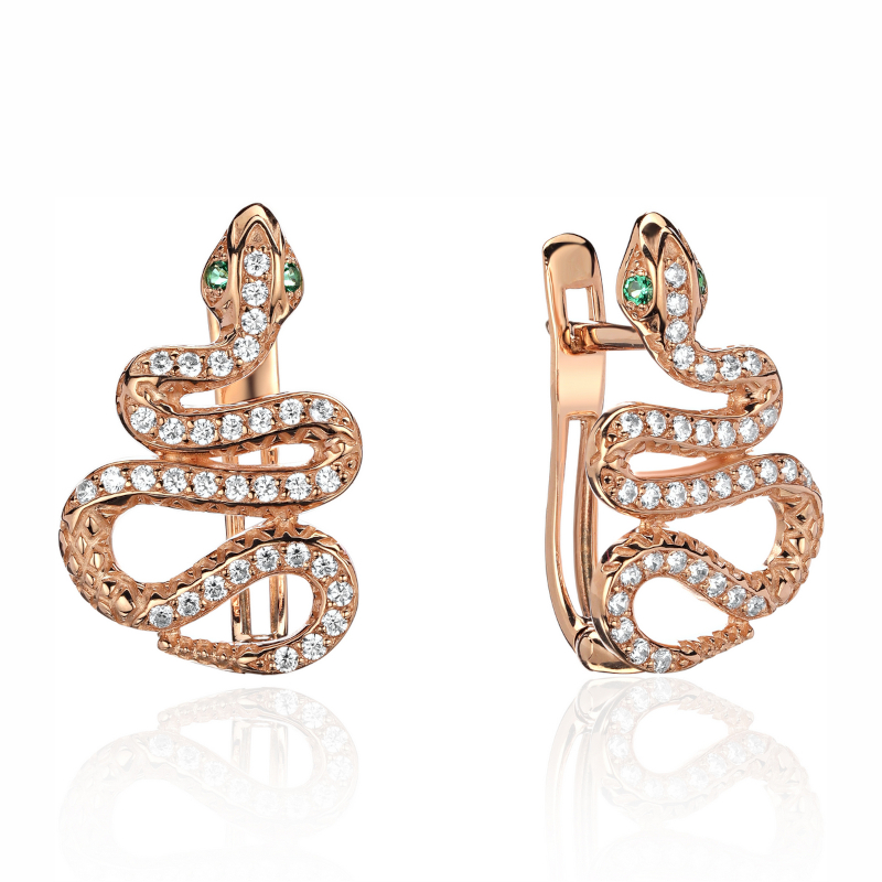 Серьги из красного золота 585 пробы с наноизумрудами и фианитами 01С218514-1
