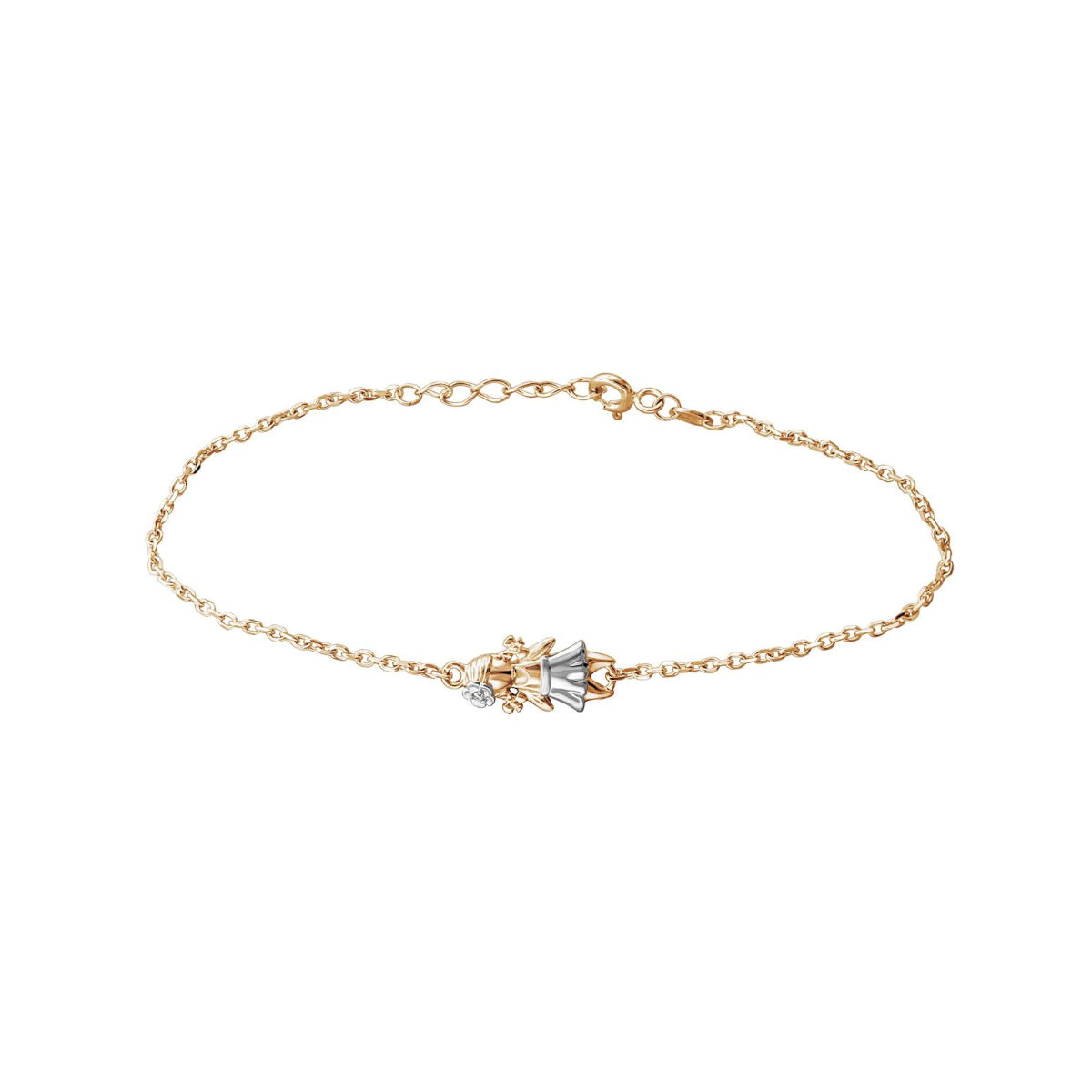 Браслет из красного золота 585 пробы с фианитом. Главным объектом браслета является фигурка "девочка". Браслет с глубоким смыслом полюбился мамам дочек. А если у Вас есть сестра, то браслет послужит отличным подарком родному человеку. Мы по особому относимся к предметам, которые хранят воспоминания о близких. Такие вещи мы носим с особой гордостью и трепетом.