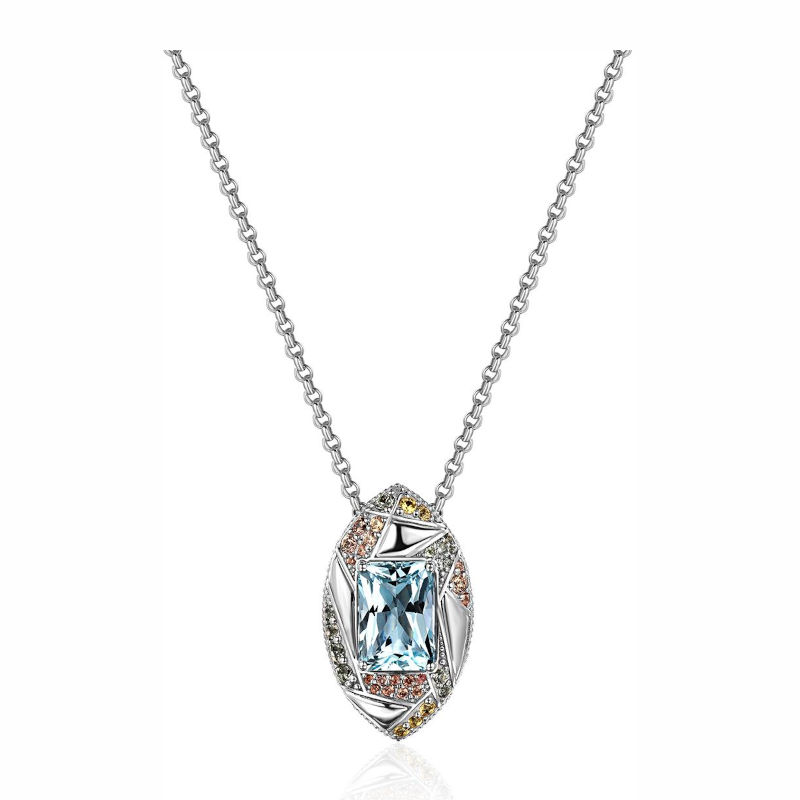 Колье из белого золота 585 пробы с аквамарином, сапфирами и бриллиантами 01Л622277-1
