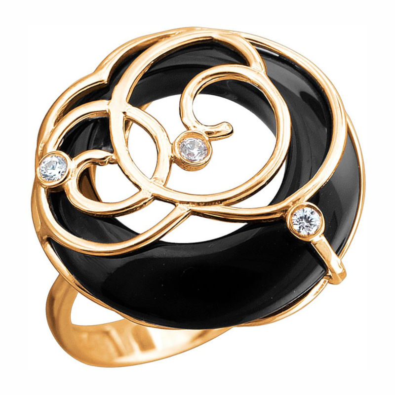 Кольцо из золоченого серебра 925 пробы с натуральным черным агатом и фианитами по цветовой гамме и дизайну подойдет ко всему, что вы привыкли надевать в офис или на коктейльную вечеринку. Говорят, что агат поглощает и «отводит» все ненужное, бережет своего обладателя, помогает успокоиться и собраться с мыслями. В его ночной глянец, подсвеченный лунным блеском, хочется всматриваться, как в бездну — а затем провести пальчиком по «кружевному» ободку, надеть кольцо и с улыбкой выйти навстречу новому дню. Лучше всего это украшение будет смотреться в «обнимку» с такими же серьгами и подвеской из коллекции Mineral silver.