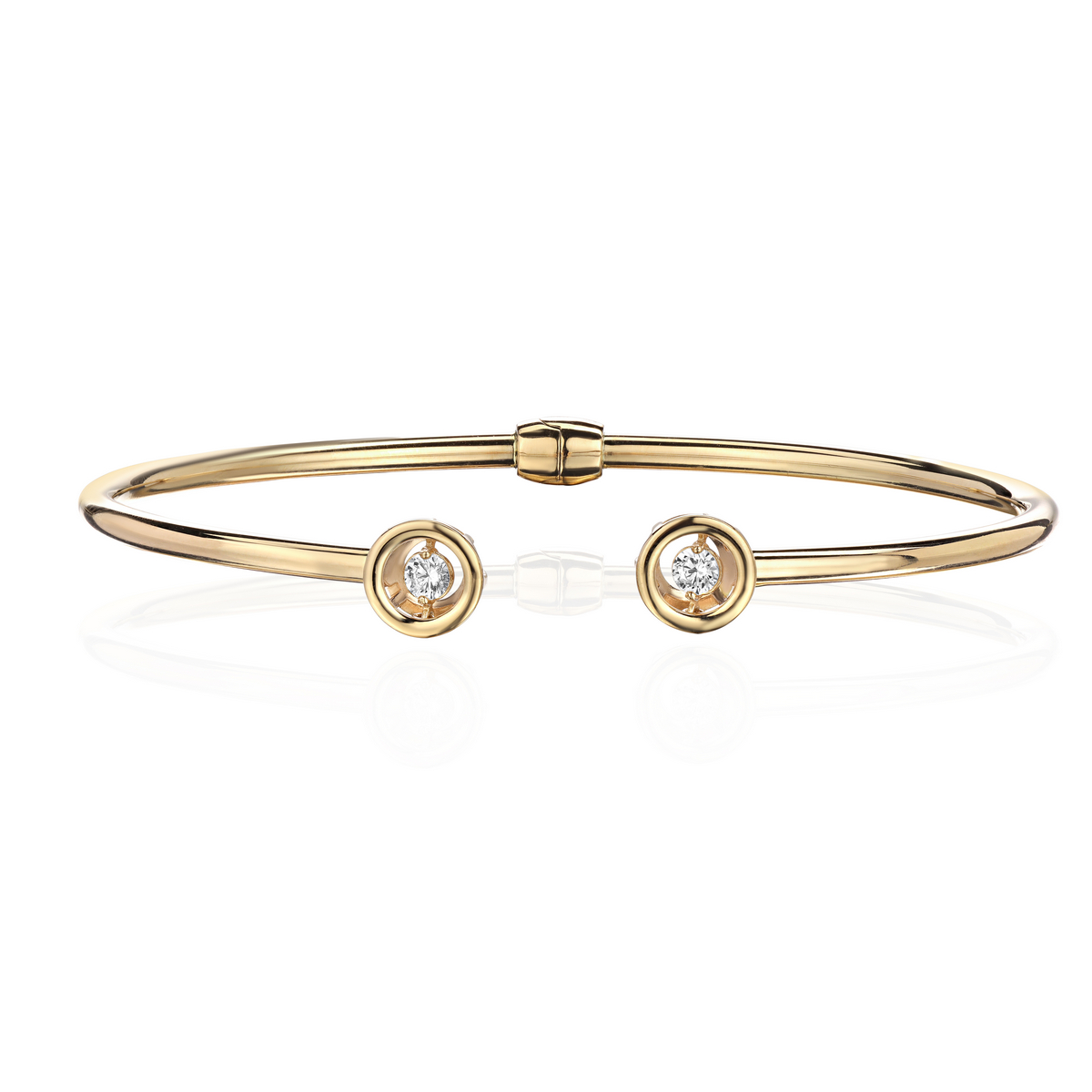 Блеск фианитов великолепно дополняет сияние золота, создавая интригующий контраст и привнося игривость в каждое движение. Плавные линии дизайна и геометрическая симметрия делают браслет особенно привлекательным, придавая ему легкость и воздушность. Благодаря оригинальному дизайну этот аксессуар станет завершением образа как для повседневной одежды, так и для вечернего наряда.