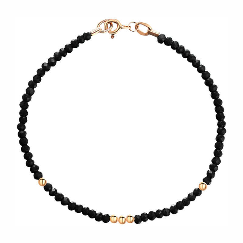Браслет из красного золота 585 пробы с черным хрусталем 01Б213152-2