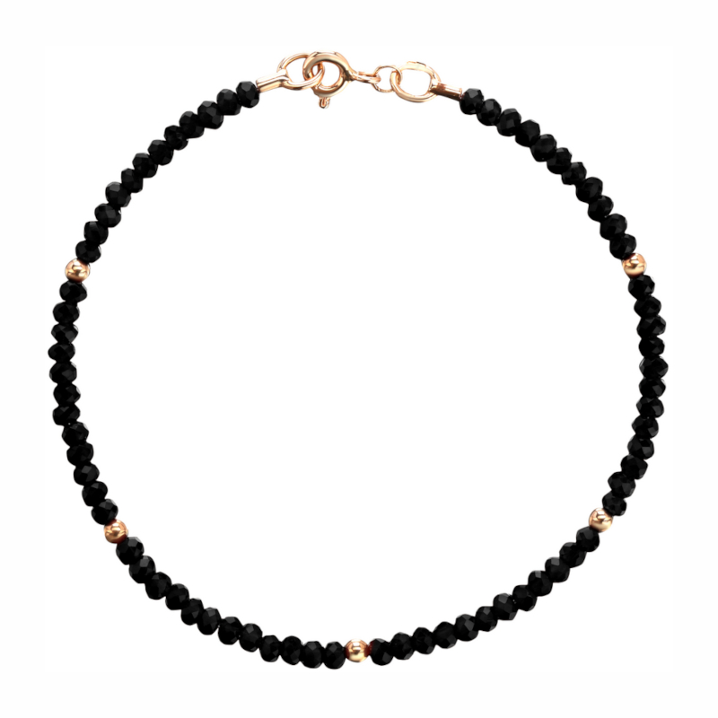 Браслет из красного золота 585 пробы с черным хрусталем 01Б213151-2