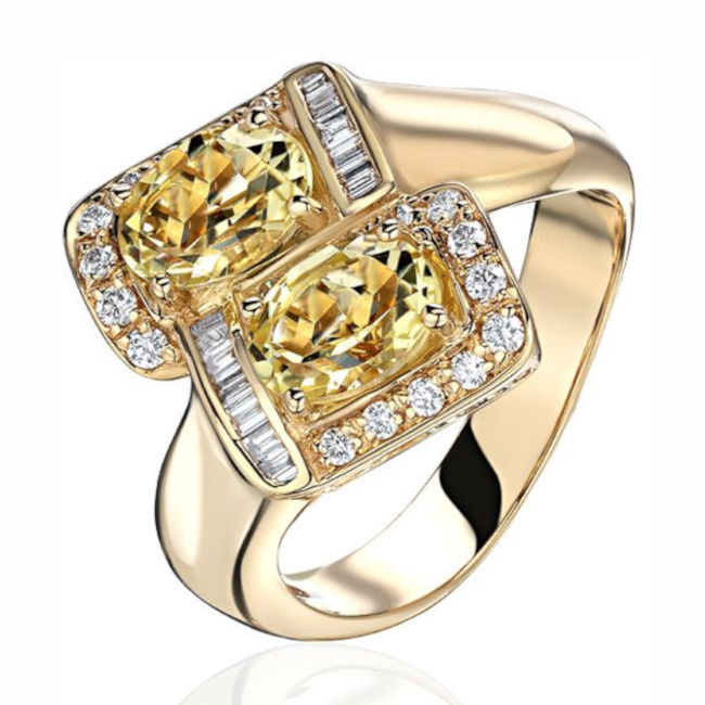 Кольцо из желтого золота 585 пробы с кварцем и бриллиантами 01К6313995-5