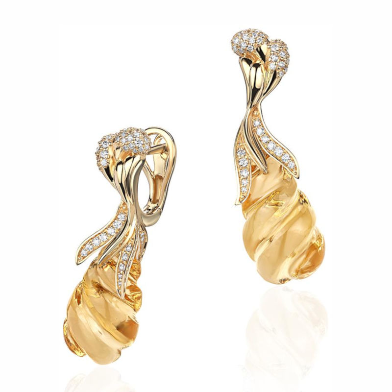 Серьги из желтого золота 585 пробы с цитринами и бриллиантами 01С6315148-3