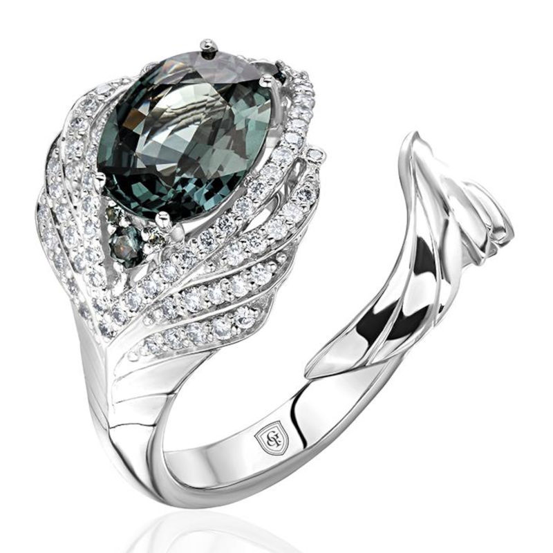 Кольцо из белого золота 585 пробы с сапфирами, бриллиантами и шпинелью 01К6215150-2