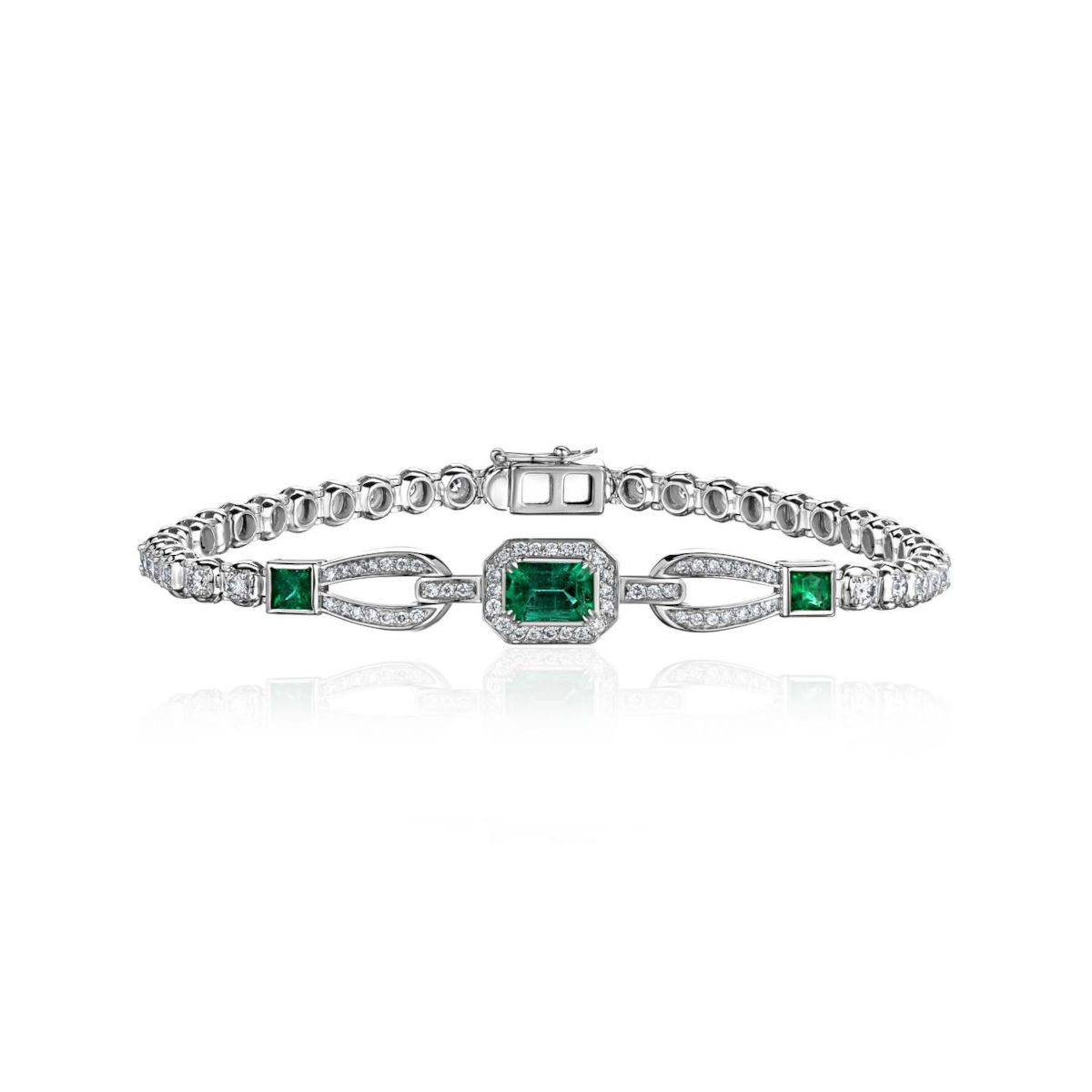 Браслет из белого золота 585 пробы с изумрудами и бриллиантами 01Б623368-1