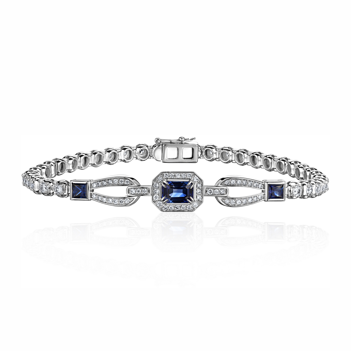 Браслет из белого золота 585 пробы с сапфирами и бриллиантами 01Б623478-5