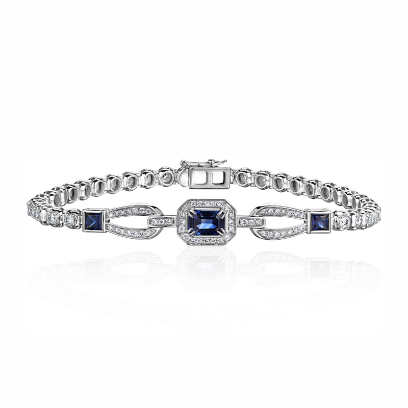 Браслет из белого золота 585 пробы с сапфирами и бриллиантами 01Б623368-5