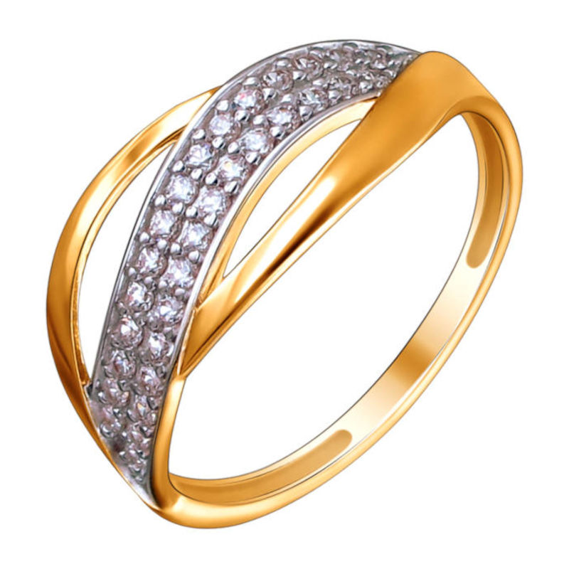 Кольцо из красного золота 585 пробы с фианитами. Сегодня сочетание золота и фианита уже считается классикой. Роскошный блеск фианита привлекает взгляды, а оригинальный дизайн вносит в образ нотку элегантности. Самые смелые решения дизайнеров воплощаются в современных украшениях.