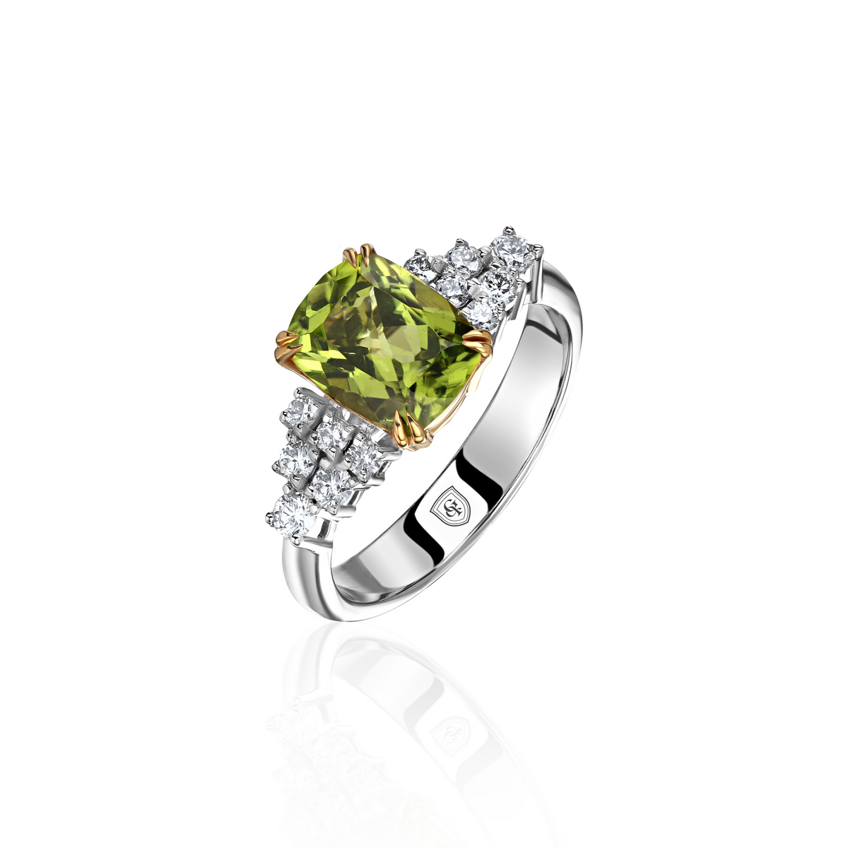 Кольцо из комбинированного золота 750 пробы с хризолитом и бриллиантами 01К6814292-3